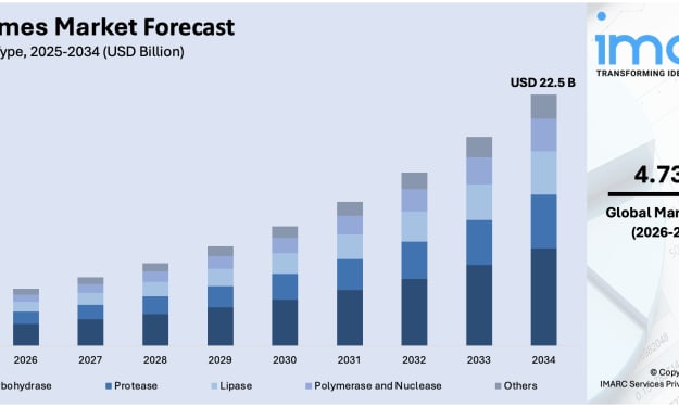 Rising demand for sustainable industrial processes, advancements in biotechnology, and the increasing integration of biocatalysts in food and pharmaceutical sectors are driving the global enzymes demand. Supported by green chemistry initiatives, protein engineering, and expanding applications in biofuels and waste management, the market is witnessing significant transformation. According to IMARC Group’s latest data, the global enzymes market size was valued at USD 14.7 Billion in 2025. Looking forward, IMARC Group estimates the market to reach USD 22.5 Billion by 2034, exhibiting a CAGR of 4.73% from 2026-2034.