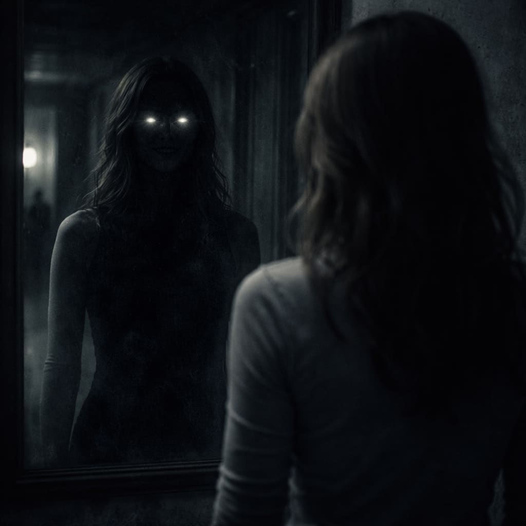 Her reflection was already there.